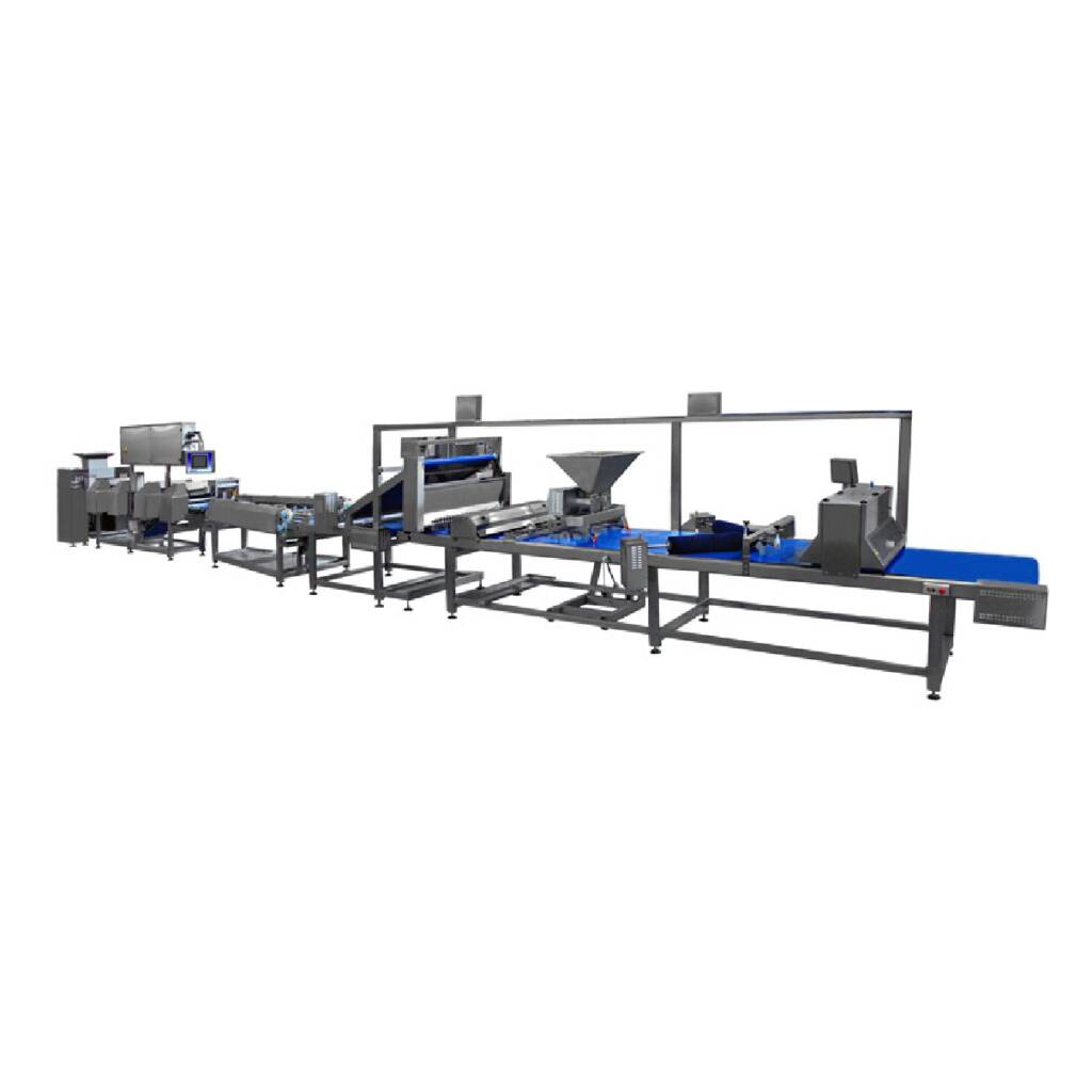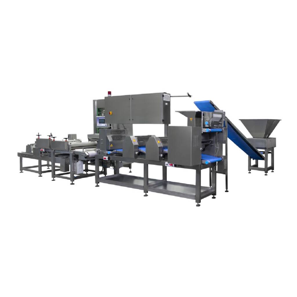Η γραμμή παράγει φύλλο με τη διαδικασία της εξέλασης, χωρίς να στρεσάρει το ζυμάρι, στη συνέχεια του δίνει σχήμα, ομαδοποιεί και λαδώνει τα φύλλα, (πατενταρισμένη διαδικασία), προσθέτει γέμιση και το κόβει στις επιθυμητές διαστάσεις.