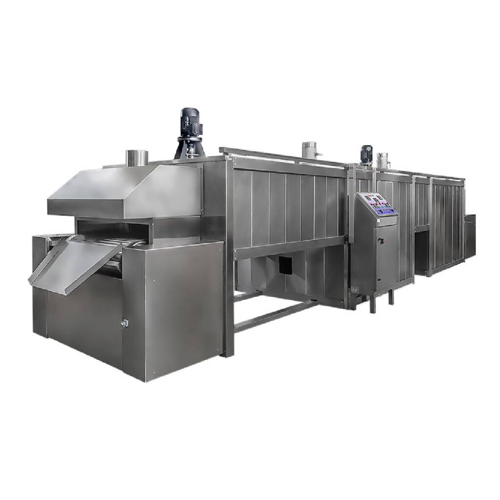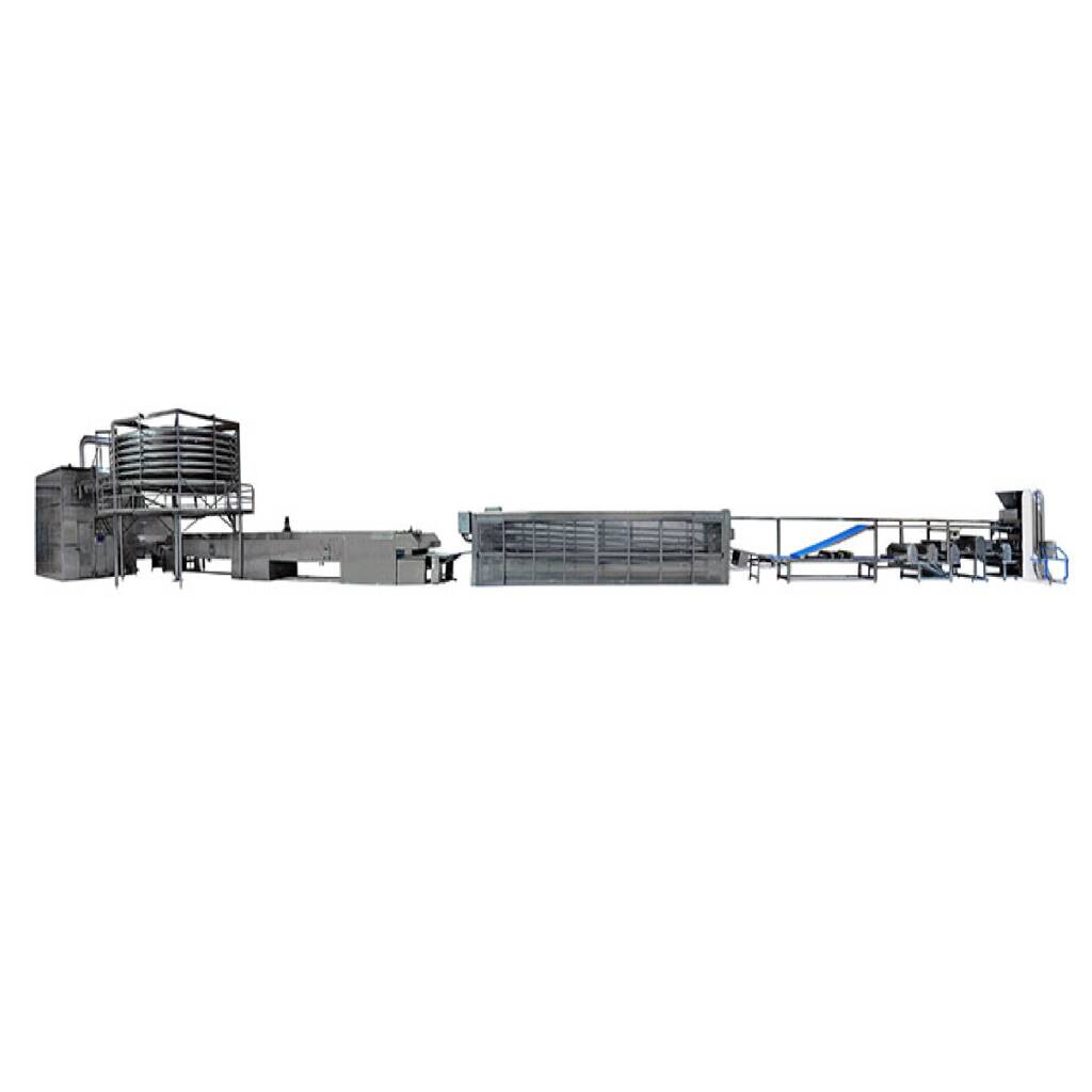 Η ζύμη ανακατεύεται σε ένα ειδικά σχεδιασμένο μίξερ έπειτα μεταφέρεται σε δεξαμενή όπου στην συνέχεια ρέει μέσα από μία αντλία και πέφτει στο περιστρεφόμενο και θερμαινόμενο ταψί, ψήνεται και στη τέλος μαζεύεται στον πάγκο συλλογής.